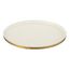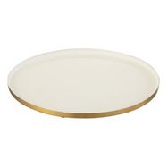 Informations Techniques : Dimensions : D. 41 x H. 1,5 cm Matière : 100% Métal Spécificités : Déco & Pratique Plateau de service Forme ronde Poids : 0,87 kg Couleur : Blanc & Or