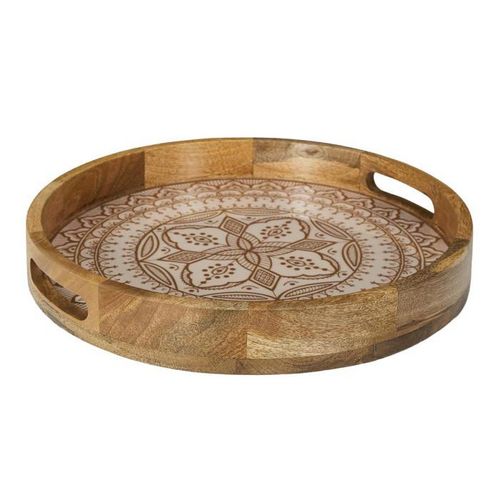 Informations Techniques : Dimensions : D. 35 x H. 5 cm Matière : 100% Bois (Manguier) Spécificités : Solide & Pratique Plateau rond Avec poignées Intérieur à motifs Certification FSC Poids : 1,2 kg Couleur : Terracotta
