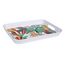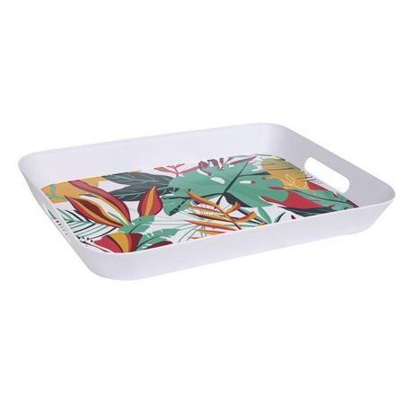 Informations Techniques : Dimensions : L. 41 x l. 32 x H. 4,5 cm Matière : 100% Polypropylène Spécificités : Pratique & Utile Plateau rectangulaire Imprimé tropical Poignées latérales Poids : 0,5 kg Couleur : Multicolore