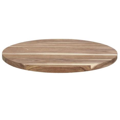 Informations Techniques : Dimensions : D. 35 x H. 4 cm Matière : 100% Bois (Acacia) Spécificités : Pratique & Utile Plateau tournant Forme ronde Poids : 1,2 kg Couleur : Naturel
