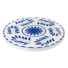 Informations Techniques : Dimensions : D. 45,5 x H. 5 cm Matière : Bois (Manguier) Spécificités : Robuste & Pratique Plateau tournant rond Imprimé floral Poids : 3,41 kg Couleur : Bleu & Blanc