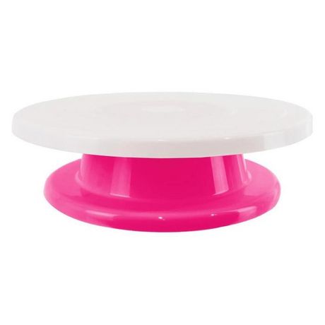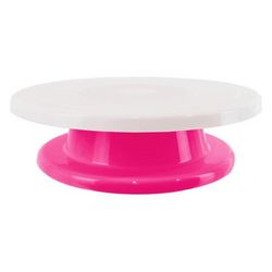 Informations Techniques : Dimensions : D. 27,7 x H. 7,8 cm Matière : Polypropylène Spécificités : Pratique & Utile Plateau Tournant Pour Gâteaux Forme Ronde Idéal pour Monter & Décorer vos Gâteaux en un seul geste Poids : 0,25 kg Couleur : Rose & Blanc