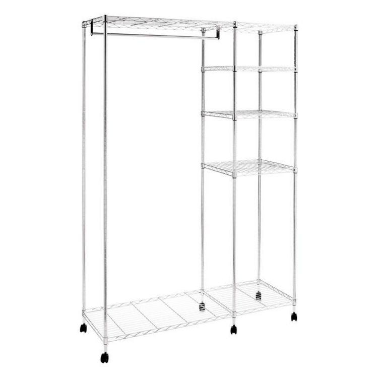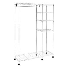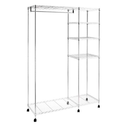 Informations Techniques : Dimensions : L. 123 x l. 45 x H. 181 cm Matière : Acier Spécificités : Pratique & Utile Portant à Vêtement Design 1 Tringle 1 Colonne avec plusieurs Niveaux Avec Roulettes À monter soi-même Poids : 11,34 kg Couleur : Argent