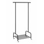 Informations Techniques : Dimensions : L. 93 x P. 54 x H. 175 cm Matière : Acier Spécificités : Pratique & Utile Portant à Vêtement Design 1 Rangement 1 Tringle Avec Roulettes À monter soi-même Poids : 6,21 kg Couleur : Noir