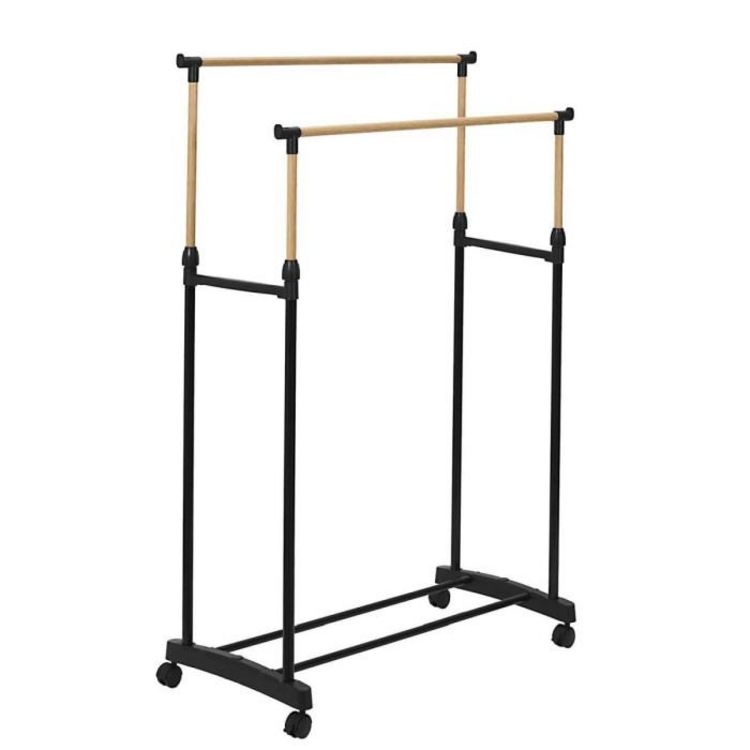 Portant à Vêtements Double Ajustable Effet Bois 160cm Noir