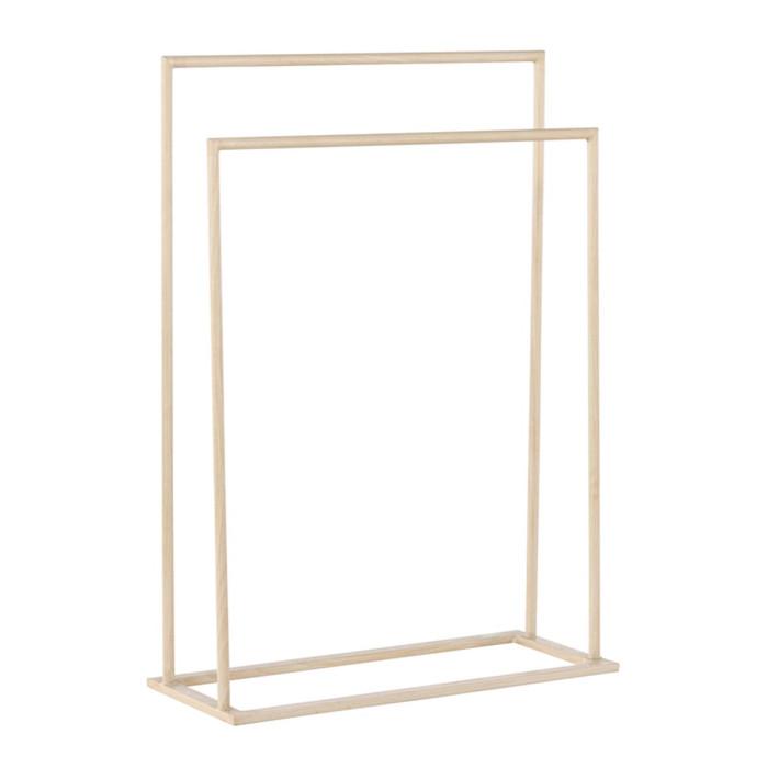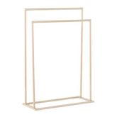 Informations Techniques : Dimensions : L. 70 x l. 30 x H. 100 cm Matière : Acier Spécificités : Élégant & Fonctionnel Portant à vêtement design Avec doubles barres Structure en acier effet bois Poids max supporté : 25 kg Poids : 6,1 kg Couleur : Naturel