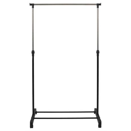 Informations Techniques : Dimensions : L. 80 x l. 43 x H. 90 cm Matières : Métal & Fer Spécificités : Pratique & Utile Portant à Vêtements Sur Roulettes Hauteur réglable (90 à 160 cm) Charge maximale : 10 kg Couleur : Noir