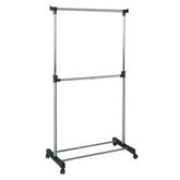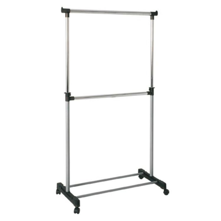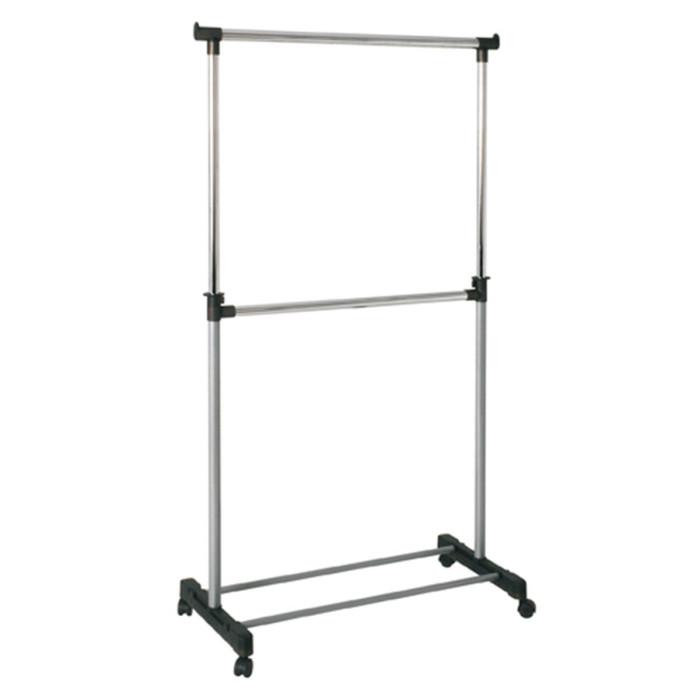 Informations Techniques : Dimensions : L. 90 x l. 43 x H. 120-210 cm Matières : Acier & PVC Spécificités : Tendance & Pratique Portant à Vêtements design Livré démonté Facile d'utilisation & d'entretien Nombre de colis : 1 Poids : 3,15 kg Couleur : Argent