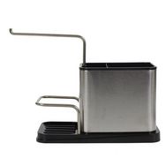 Informations Techniques : Dimensions : L. 22 x l. 13 x H. 10 cm Matières : Polypropylène Spécificités : Pratique & Utile Porte Éponge & Brosse A Poser Poids : 0,292 kg Couleur : Argent & Noir