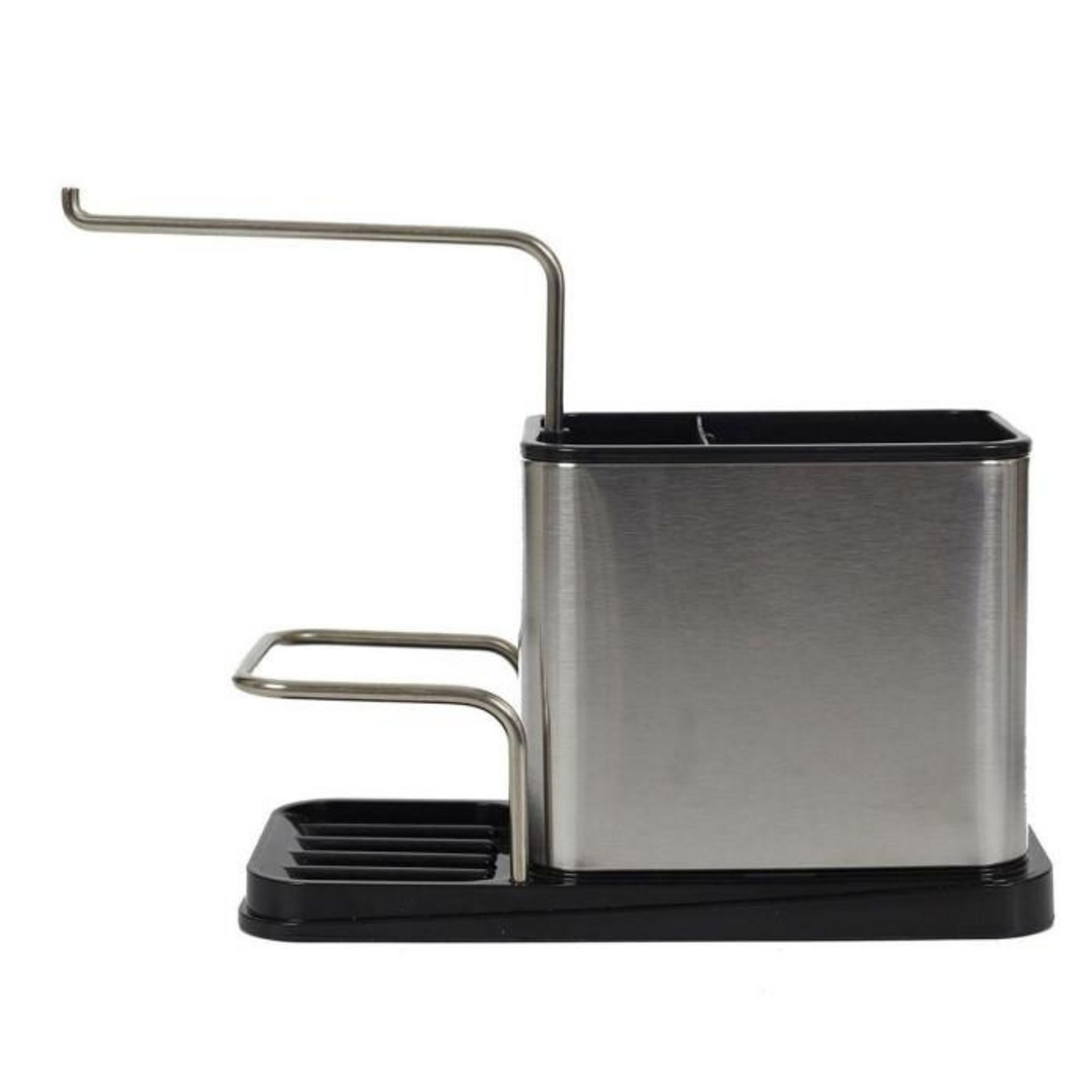 Porte Éponge & Brosse Inox 22cm Argent & Noir