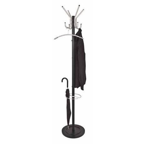 Informations Techniques : Dimensions : D. 36 x H. 182 cm Matière : Acier Spécificités : Tendance & Moderne Porte-Manteaux design Porte-Parapluies Intégré Livré Démonté Facile d'Entretien & d'Utilisation Nombre de colis : 1 Poids : 8,37 kg Couleur : Argent & Noir