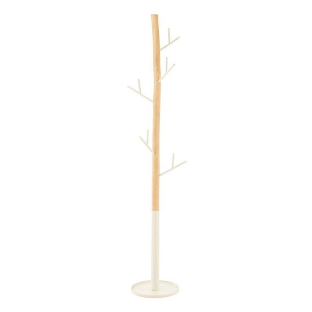 Informations Techniques : Dimensions : D. 38 x H. 180 cm Matières : 25% Bois (Eucalyptus) & 75% Métal Spécificités : Pratique & Utile 5 crochets doubles Design branche Poids : 7,3 kg Couleur : Naturel & Blanc