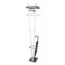 Informations Techniques : Dimensions : L. 34 x l. 30 x H. 183 cm Matières : Acier & MDF Spécificités : Tendance & Moderne Porte Manteaux Mural Design Avec Porte Parapluies Intégré 5 Crochets Livré Démonté Poids : 5,76 kg Couleur : Blanc & Anthracite