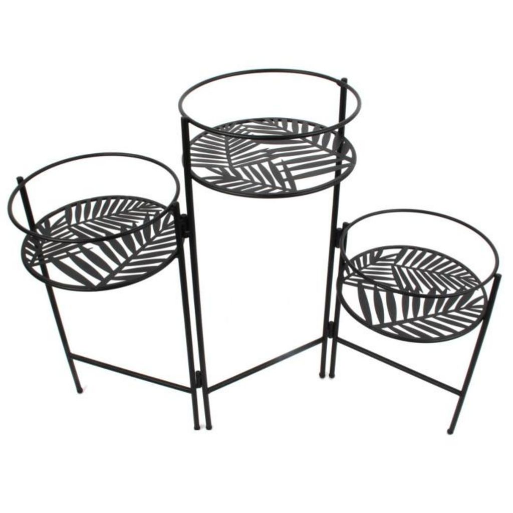 Porte-Plantes 3 Niveaux Éventail 66cm Noir