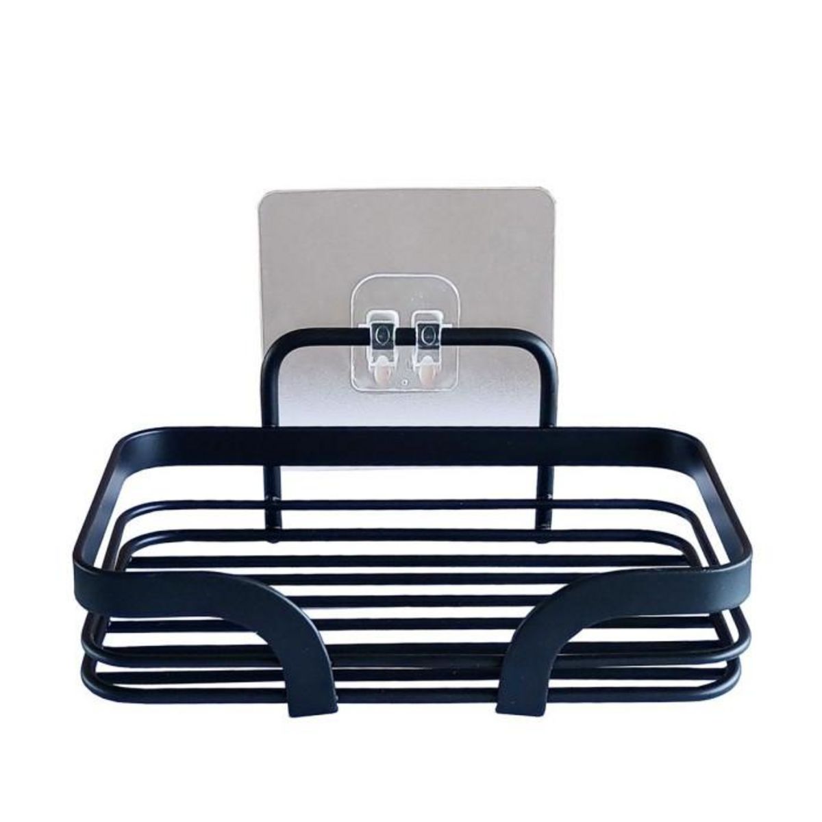 Informations Techniques : Dimensions : L. 14 x l. 9,2 x H. 5,6 cm Matières : Métal & Plastique Spécificités : Pratique & Utile Porte savon rectangulaire Fixation adhésive Poids max supporté : 1 kg Poids : 0,15 kg Couleur : Noir
