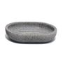 Informations Techniques : Dimensions : L. 12 x l. 8,5 x H. 2 cm Matière : Polyrésine Spécificités : Pratique & Déco Porte savon design Forme ovale Vendu à l'unité Poids : 0,14 kg Couleur : Gris