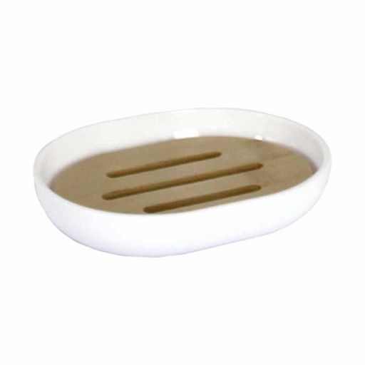 Informations Techniques : Dimensions : L. 12,2 x l. 9,3 x H. 2,5 cm Matières : Polyester & Bambou Spécificités : Utile & Pratique Porte Savon Forme Ovale Poids : 0,065 kg Couleur : Blanc