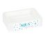 Informations Techniques : Dimensions : L. 12,5 x l. 8,4 x H. 3,3 cm Matière : Plastique Spécificités : Design & Pratique Porte Savon Forme Rectangulaire Imprimé Facile d'Entretien & d'Utilisation Couleur : Blanc