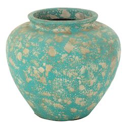 Informations Techniques : Dimensions : D. 60 x H. 50 cm Matière : Ciment Spécificités : Déco & Coloré Pot rond antique Imprimé tacheté Vendu à l'unité Poids : 14,22 kg Couleur : Bleu Azur