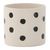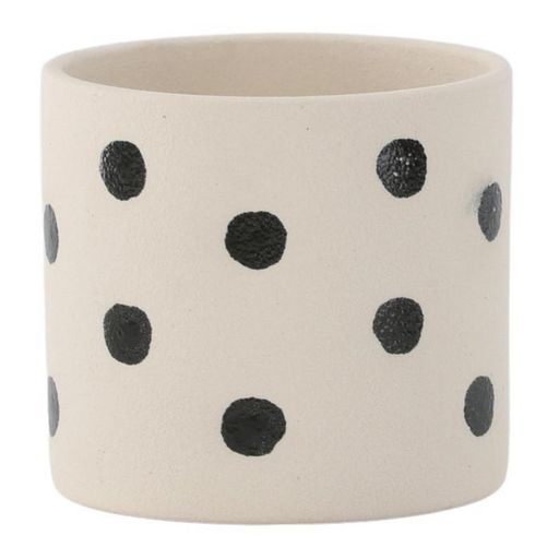 Informations Techniques : Dimensions : D. 11 x H. 10 cm Matière : Grès Spécificités : Moderne & Déco Pot rond Imprimé à pois noirs Poids : 0,65 kg Couleur : Blanc & Noir