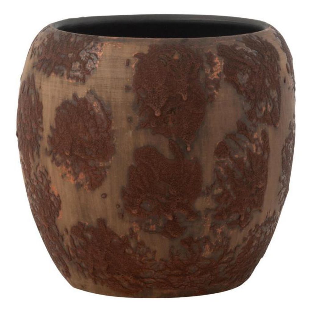 Informations Techniques : Dimensions : D. 24 x H. 22 cm Matière : Terre Cuite Spécificités : Vintage & Déco Pot de fleurs rond Design effet rouille Vendu à l'unité Poids : 2,87 kg Couleur : Marron