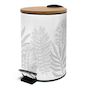 Informations Techniques : Matières : Métal & Bambou Spécificités : Pratique & Élégante Poubelle à pédale Motif imprimé feuilles Fermeture silencieuse Forme ronde Vendue à l'unité Capacité : 3L Poids : 0,64 kg Couleur : Gris