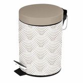 Informations Techniques : Contenance : 3L Matière : Métal Spécificités : Design & Pratique Poubelle à Pédale Imprimé Facile d'Entretien & d'Utilisation Couleur : Taupe & Blanc