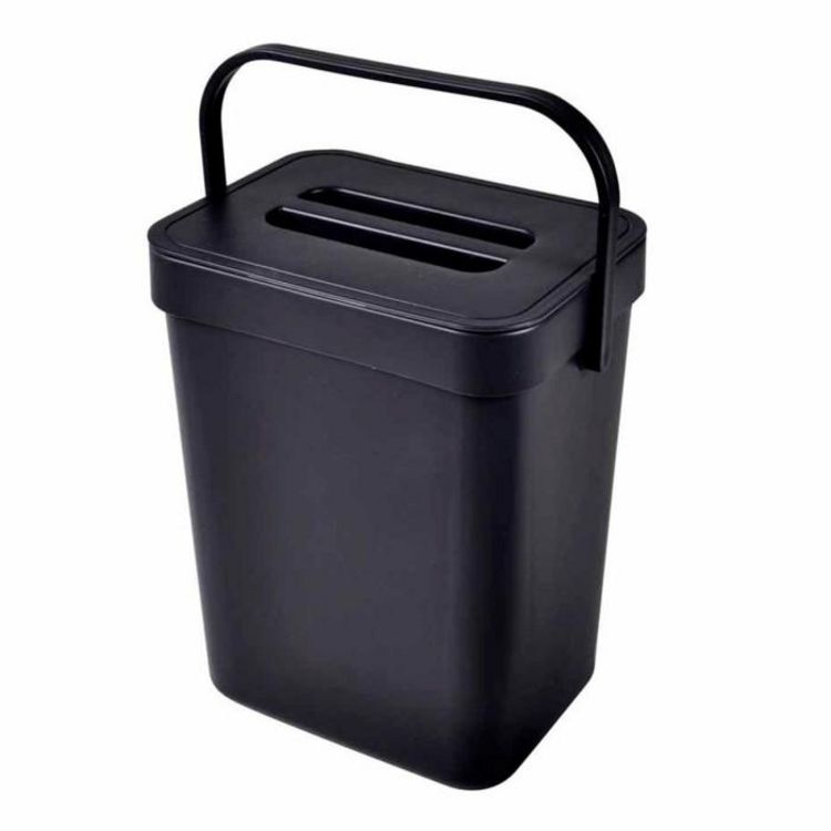 Informations Techniques : Dimensions : L. 18 x l. 14 x H. 24 cm Matière : Plastique Spécificités : Pratique & Tendance Poubelle de compost Crochet pour porte/tiroir Adhésif repositionnable Couvercle accrochable et anse Contenance : 5 L Poids : 0,43 kg Couleur : Anthracite