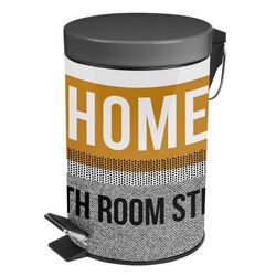 Informations Techniques : Dimensions : Produit Packagé : D. 17 x H. 26 cm Matière : Métal Spécificités : Pratique & Utile Poubelle de Salle de Bain Avec Pédale Forme Ronde Motif Imprimé Contenance : 3 L Poids : 0,632 kg Couleur : Ocre & Gris