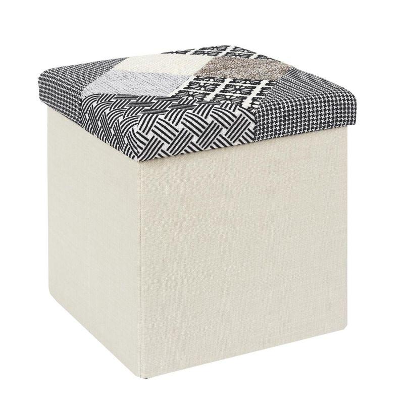Pouf Coffre Pliable Patchwork 38cm Greige