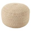 Informations Techniques : Dimensions : D. 50 x H. 35 cm Matière : Textile Spécificités : Tendance & Pratique Pouf Design Forme Ronde Style Bohème Chic Convient à un usage extérieur Poids : 2,57 kg Couleur : Naturel & Blanc