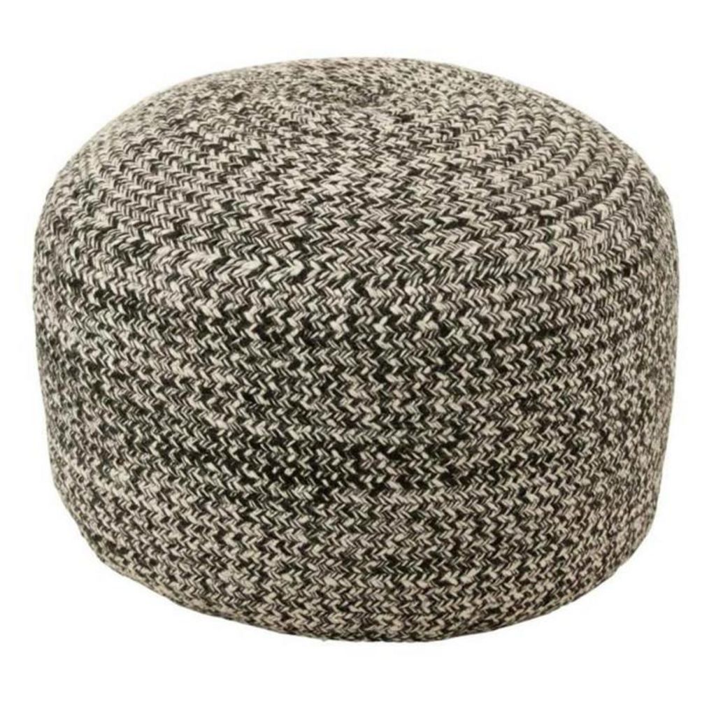 Informations Techniques : Dimensions : D. 50 x H. 35 cm Matière : Textile Spécificités : Tendance & Pratique Pouf Design Forme Ronde Style Bohème Chic Convient à un usage extérieur Poids : 2,57 kg Couleur : Noir & Blanc