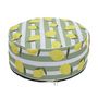Informations Techniques : Dimensions : L. 56 x l. 56 x H. 25 cm Matières : 60% Polyester & 40% PVC Spécificités : Coloré & Pratique Pouf gonflable Imprimé citron Traitement déperlant Traitement UV textile Forme ronde Usage extérieur Poids : 0,6 kg Couleur : Jaune, Vert & Blanc