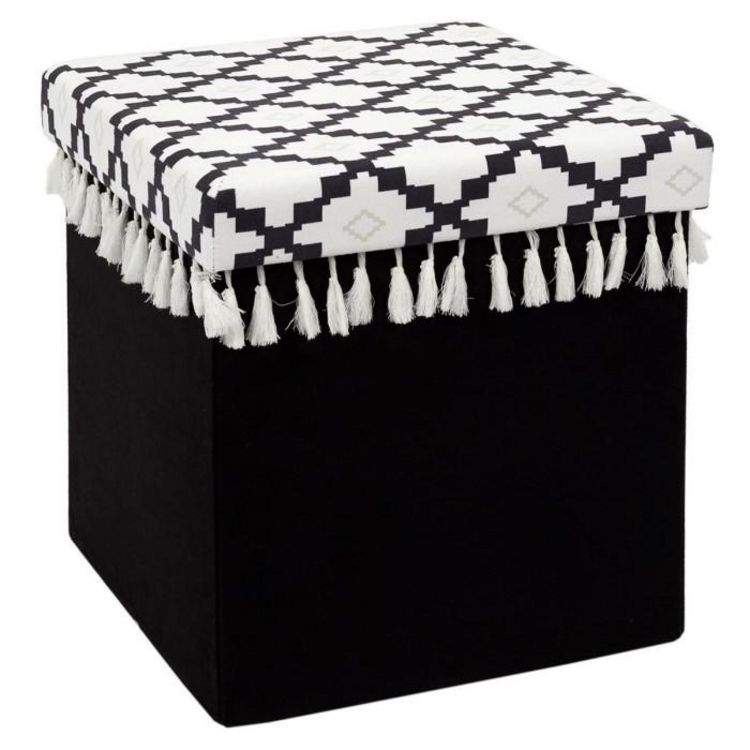 Pouf Pliable & Coffre Mirage 38cm Noir & Blanc