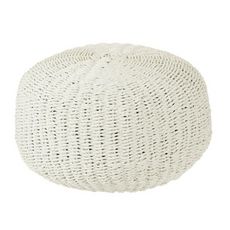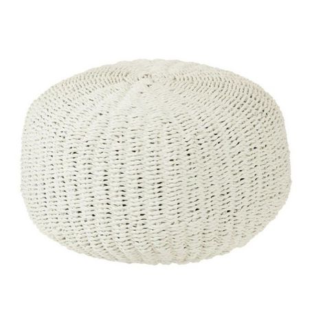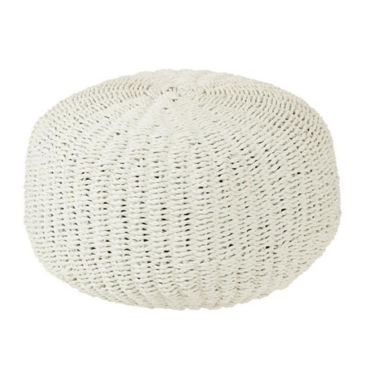 Pouf Rond à Rayure Tissage 50cm Blanc