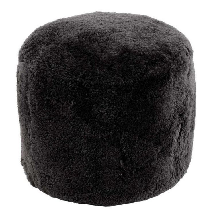 Pouf Rond Déco Peau de Mouton 45cm Gris Foncé