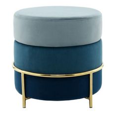 Pouf Rond Design en Velours Matilda 48cm Bleu