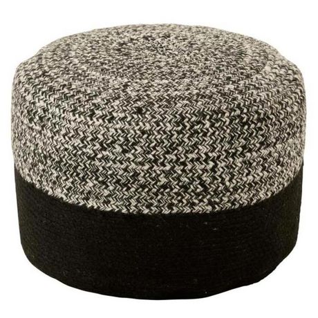 Informations Techniques : Dimensions : D. 50 x H. 35 cm Matière : Textile Spécificités : Tendance & Pratique Pouf Design Forme Ronde Style Bohème Chic Convient à un usage extérieur Poids : 2,57 kg Couleur : Noir & Blanc