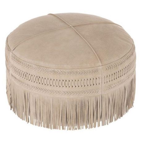 Pouf Rond en Cuir à Franges India 50cm Gris