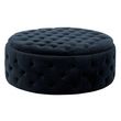 Informations Techniques : Dimensions : L. 100 x l. 100 x H. 40,5 cm Matière : Velours Spécificités : Tendance & Déco Pouf design Forme Ronde Avec Boutons Assise Confortable Poids : 16,78 kg Couleur : Anthracite