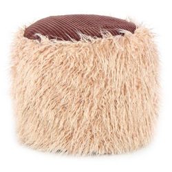 Pouf Rond Imitation Fourrure Bobtail 45cm Beige
