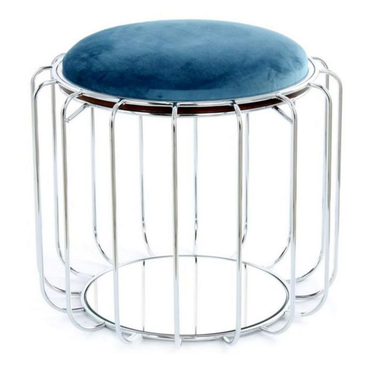 Pouf & Table d'Appoint Comfortable 50cm Bleu Pétrole & Argent