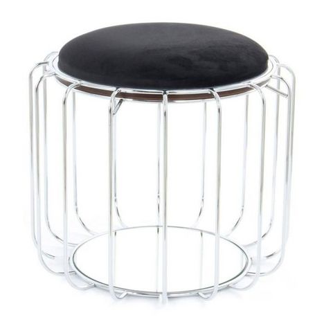 Pouf & Table d'Appoint Comfortable 50cm Noir & Argent