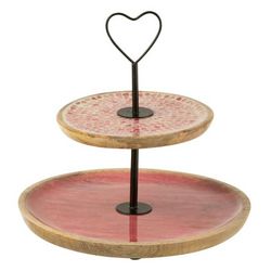 Présentoir 2 Étages Mosaïque Cœur en Bois Freddy 30cm Rose