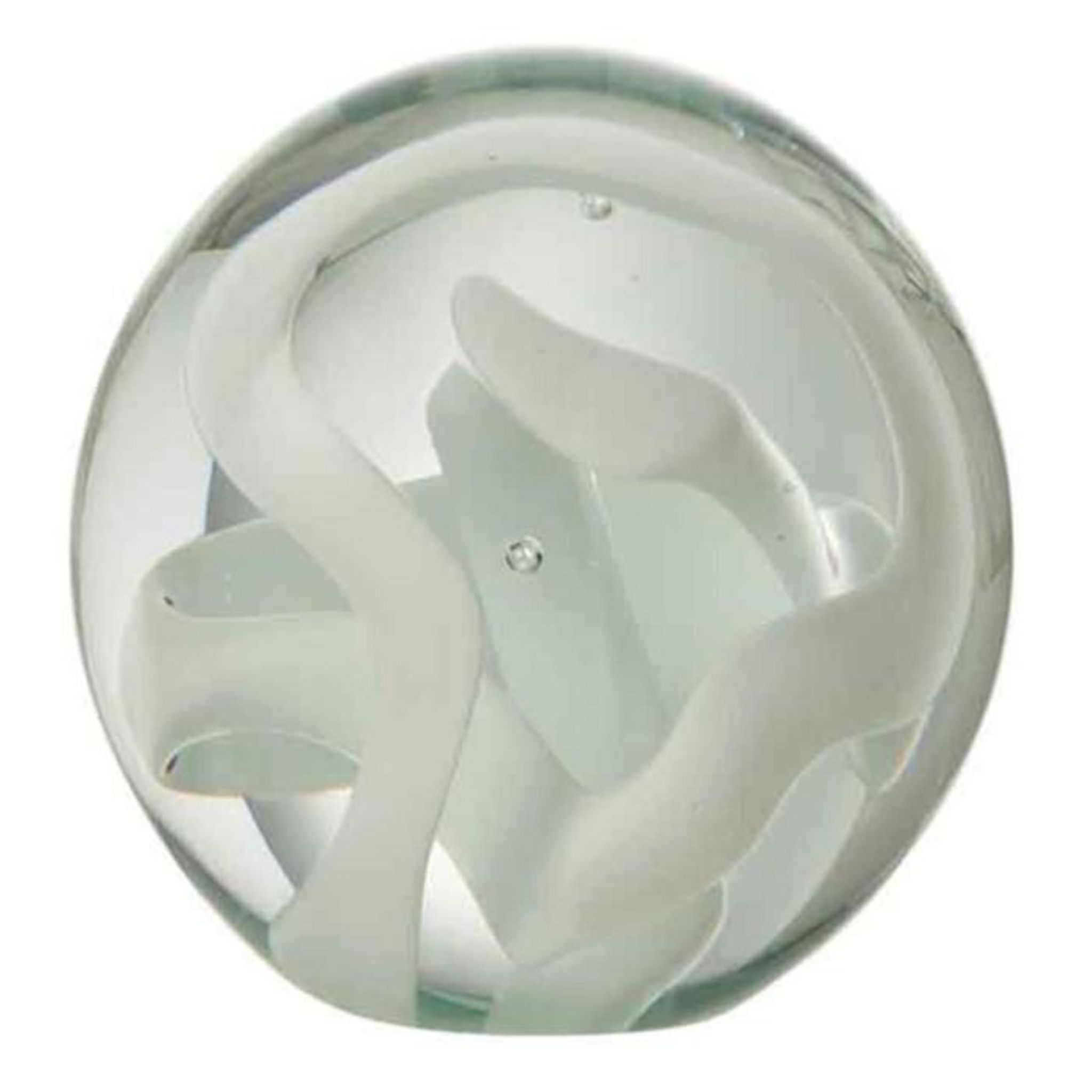Informations Techniques : Dimensions : L. 10 x l. 10 x H. 10 cm Matière : Verre Spécificités : Tendance & Moderne Presse-Papier A Poser Forme Ronde Motif Guirlande Poids : 1,25 kg Couleur : Blanc