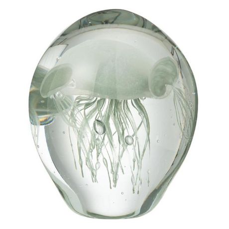 Informations Techniques : Dimensions : L. 10,5 x l. 10,5 x H. 12,5 cm Matière : 100% Verre Spécificités : Déco & Utile Presse-papier rond Design méduses Vendu à l'unité Poids : 1,51 kg Couleur : Transparent & Vert