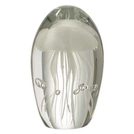 Informations Techniques : Dimensions : L. 8 x l. 8 x H. 12 cm Matière : Verre Spécificités : Tendance & Moderne Presse-Papier A Poser Forme Ronde Design Méduse Poids : 1 kg Couleur : Blanc