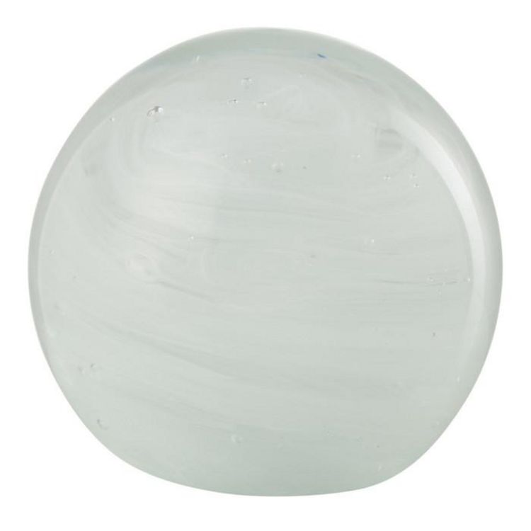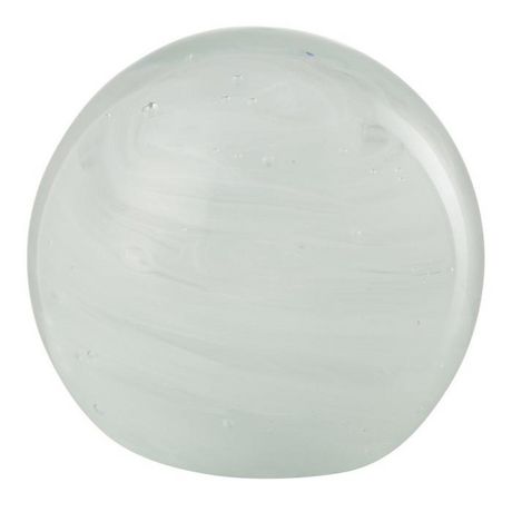 Informations Techniques : Dimensions : D. 11 x H. 11 cm Matière : 100% Verre Spécificités : Déco & Utile Presse-papier design Forme ronde Vendu à l'unité Poids : 1,62 kg Couleur : Blanc