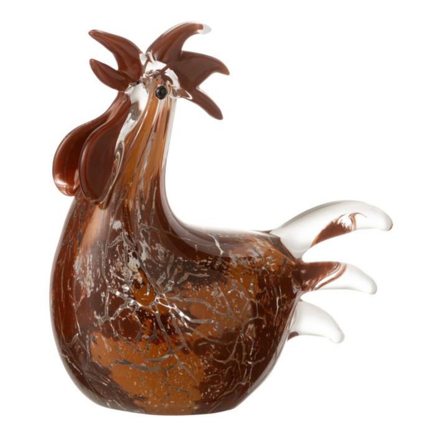Presse-Papier Poule Verre Tacheté 15cm Marron