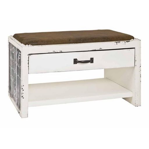 Informations Techniques : Dimensions : L. 72 x l. 38 x H. 42 cm Matières : MDF & Tissu Spécificités : Original & Vintage Range Chaussures & Assise Assise en Tissu Aspect Cuir 1 Niveau 1 Tiroir Livré Monté Facile d'Entretien & d'Utilisation Nombre de colis : 1 Poids : 10,35 kg Couleur : Blanc & Ma